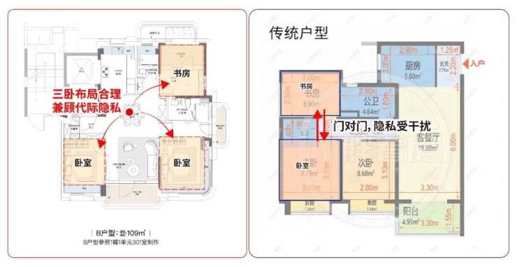 ①、前滩罕见正南北向户型