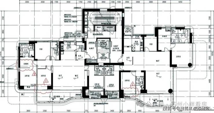 本次公示的是1#的平面图,一梯两户设计,只有种4房3卫设计。
