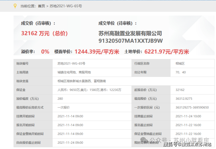 丰隆海纹中心,即,苏地2021-WG-65号地块,位于相城区高铁新城水景路西、富翔路南,是2021年11月24日,高融置业以底价32162万元竞得,成交楼面价1244元/平。咨询热线:18662309054