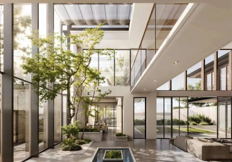 在传统别墅还在把各类材料裹满外立面的时候,湖亭望月选择了超大片玻璃,呈现全苏州首个「阳光厅」.光从四面八方洒落室内,目光所及之处皆是通透.尤其是,经历了台风天狂风暴雨,别墅后加装的空间成为居住风险.相比之下,湖亭望月前置考虑,设计「阳光厅」,不但保证立面整洁美观,而且采用价格不菲的国际一线品牌系统门窗,确保安全与品质.