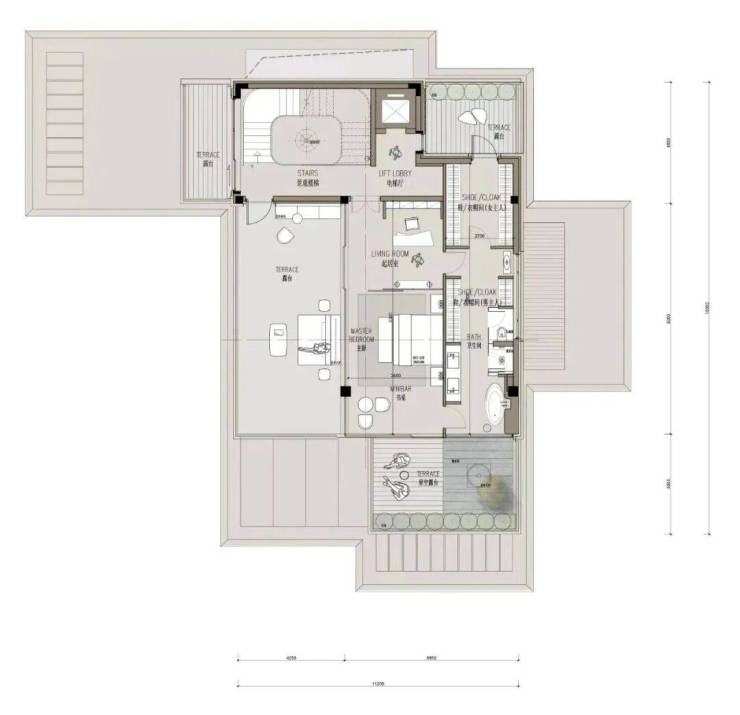 湖亭望月突破了传统别墅的一大短板——面宽.最大开间超过20米,几乎和大平层拥有同等的阔奢感.光一个主人套房,就有着超200㎡的超大面积.纵向尺度上,客厅挑高约7.5米,相当于2层楼高,堪比星级酒店大堂.这在苏州别墅上,是第一次出现.