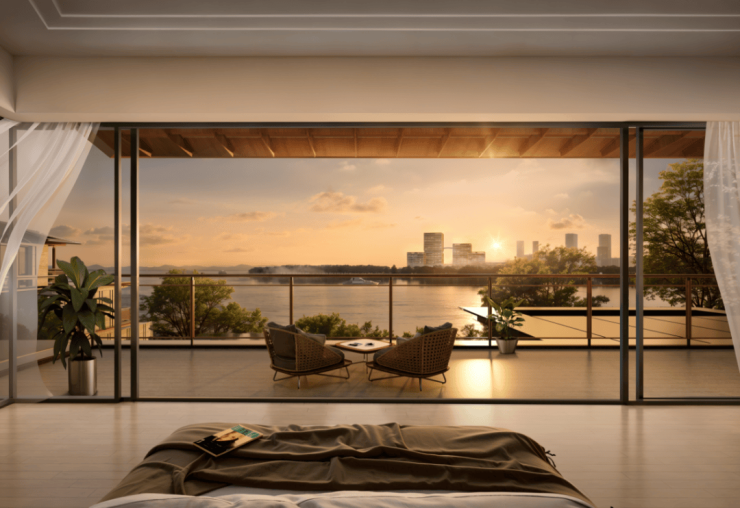 建筑与自然融合:项目建筑设计强调与自然的完美融合,采用平直大气的东方屋檐、大面积玻璃立面和开阔露台,构建出既现代又蕴含东方韵味的建筑语言.这种设计理念让湖光自然融入每个生活空间,与完善的配套共同营造出“生活即度假,度假即生活”的双重体验.