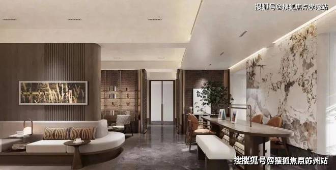 而蓝金沙岩板,金色脉络与深蓝色基调交相辉映,平添了一份奢华与神秘的美感,带来一种遨游宇宙的感觉,大面积的镜湖春晓奶茶色岩板,亦以其淡雅内敛的光泽,带来非同一般的尊贵感。