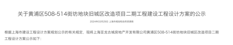 近日,上海市规划和自然资源局官网发布了黄浦区508-514街坊地块旧城区改造项目二期设计方案。该地块也就是新湖融创亚龙项目的二期。