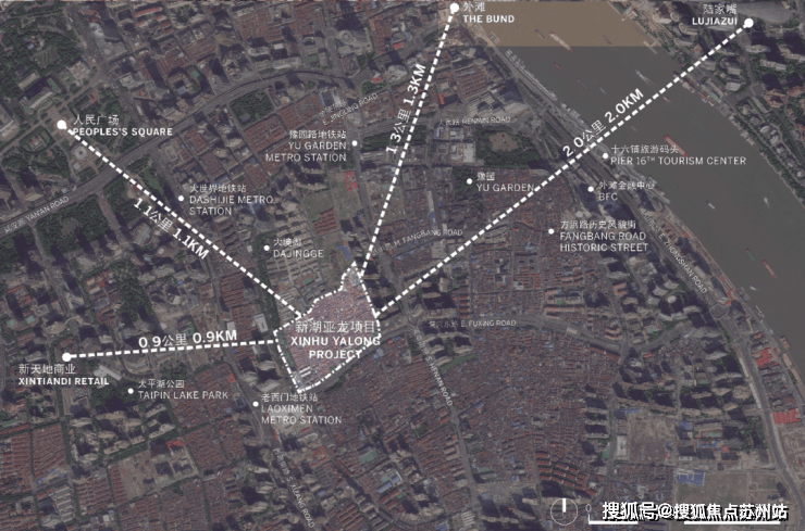 上海壹号院位于中华路和复兴东路交汇处,总建筑面积约23万方,距离新天地直线距离约900米、陆家嘴直线距离约2公里、外滩直线距离约1.3公里。