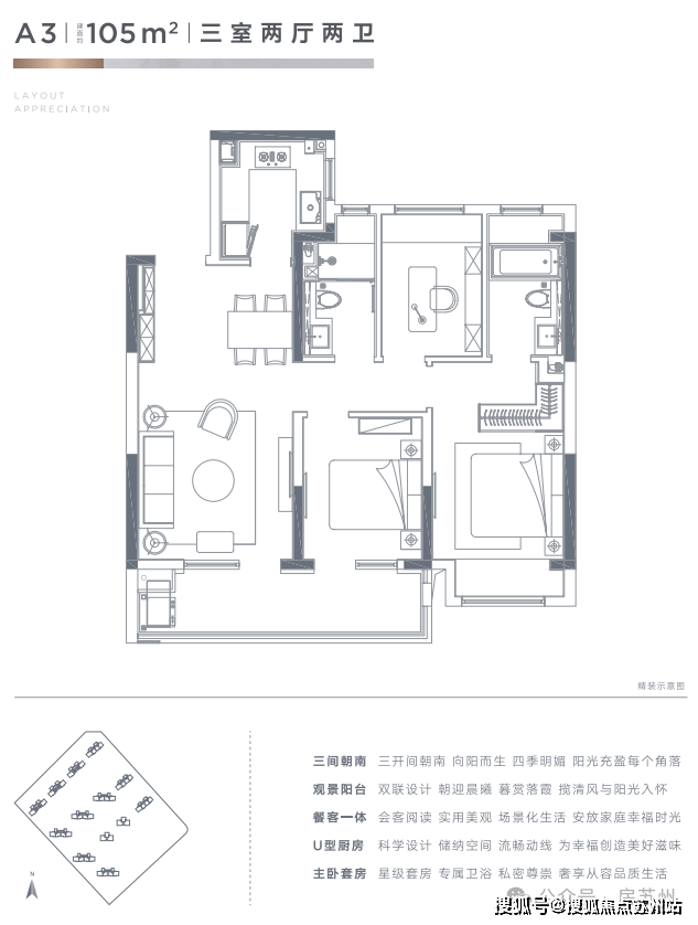 科技住宅:苏高新产城与朗诗地产强强联袂,汲取各家精粹,融合前沿国际美学,以大师手笔,匠造建面约105-135㎡国际滨水科技住区,雅乐云庭焕新城市人居.