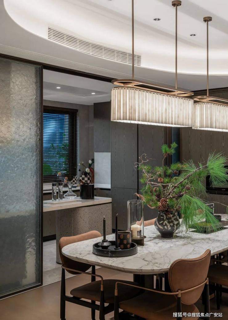 澜庭·雅致在通透格局之上,打造岛台式餐厨设计,烹饪时光之味,提升空间利用率的同时,诠释了东西方生活融合的前卫理念.