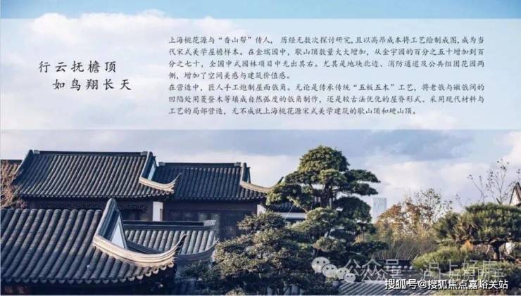 在建筑营造上,上海桃花源于明清建筑之上,融入宋代建筑风格,以大气恢宏之韵,尽展东方建筑之美。同时,上海桃花源还以中式独有的高墙深院、高屋明堂,成就一方国宅之境。