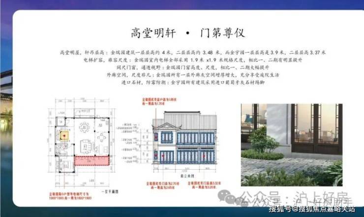 同时,建筑采用宋代宫殿,建筑出檐宽广,檐下增加斗拱、镂空雕花、甘蔗脊、阑额等元素,约2/3宅园设置入户连廊,为全国之最,雅贵造极。