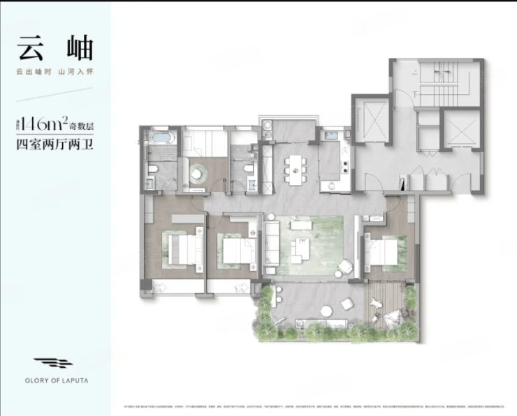 5,本批次房源的建筑面积段在107.61-146.26平,其主力户型: