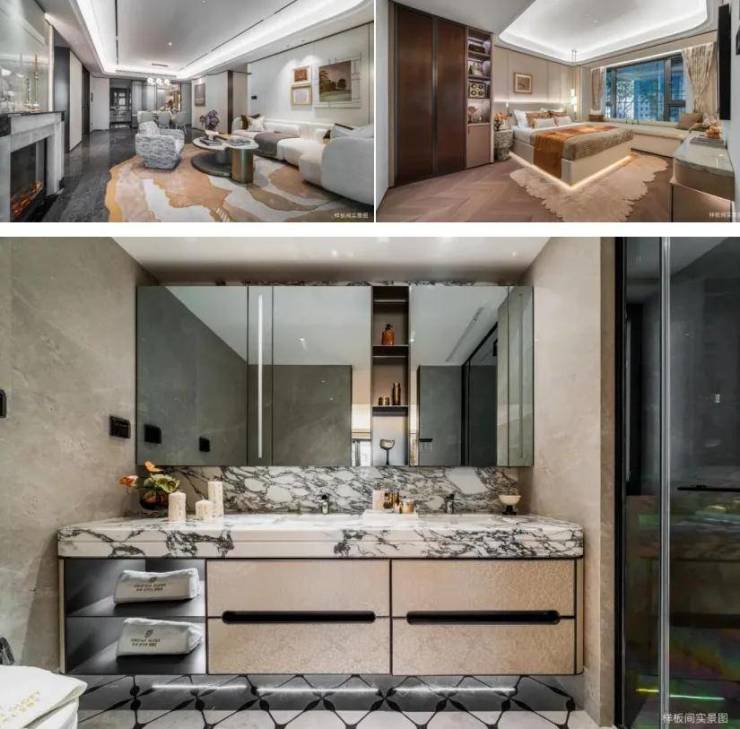 此外,室内装标同频半亿级豪宅(指单套总价半亿,下同)标准,配备嘉格纳六件套厨电(含油烟机、灶具、蒸烤一体机、洗碗机及双开门冰箱);劳芬双台盆/三折叠美妆镜柜组成的行政套房级主卫系统,并搭载华为全屋智能控制系统。