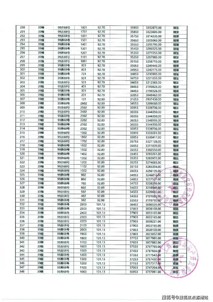 以下为项目最新一房一价表