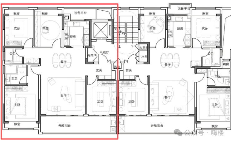 整体来看,户型设计中规中矩但亮点突出,是市场上非常受改善家庭欢迎的经典四房格局。