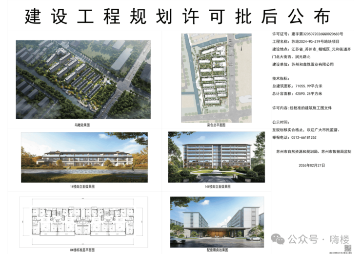 最新消息!就在昨天(2026年2月27日),相城陆慕板块的苏地2024-WG-Z19号地块项目建设工程规划正式批后公示!