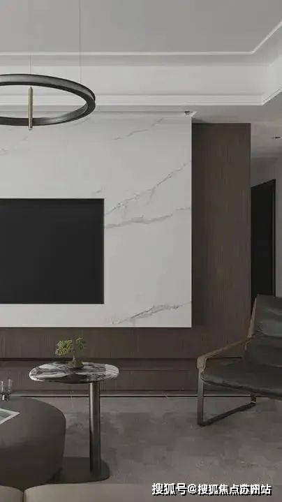 客厅部分以白色深棕为主,在交错间奠定沉稳大气的基调。独特的大理石岩板背景墙,高级感max,搭配低饱和沙发,让空间充满设计与质感。