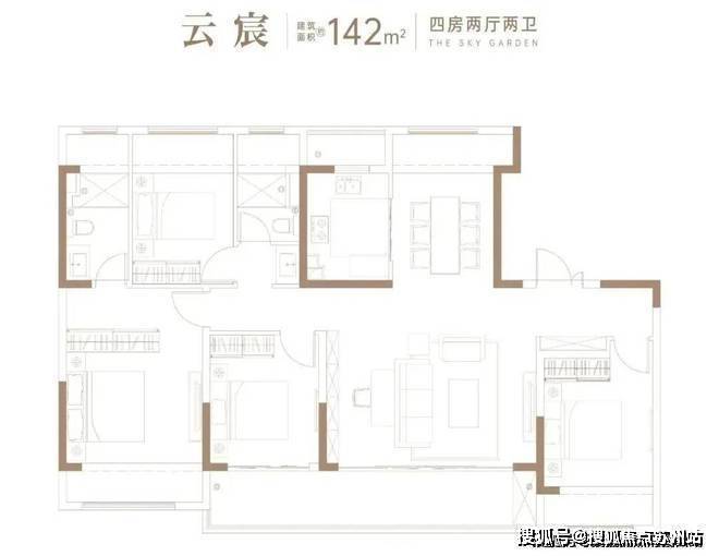 最值得推荐的是142㎡的户型,不仅是大横厅,还是双联阳台,目测近10米,做出了大平层的感觉。
