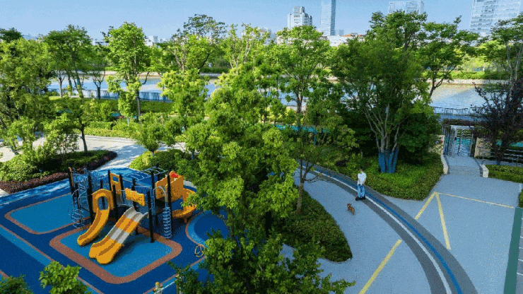 而围墙之外就是休闲方式多样的运河体育公园,以及运河沿线节点丰富、景致动人的运河生态廊道。茶余饭后、晨起幕时,业主们可在一路运河风光中随时来一场酣畅淋漓的亲子跑。