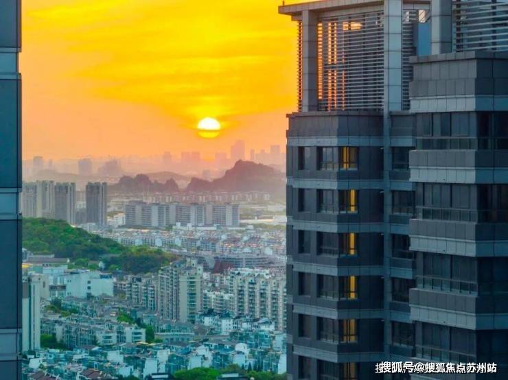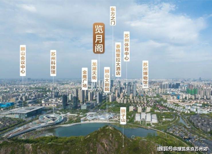 项目背靠狮山的高楼建筑群,东望如画姑苏,可远眺枫桥风景名胜区。天朗气清时,金鸡湖边的东方之门可直接映射到览月阁的窗前。城市东西两极,双峰并峙又互为窗景。