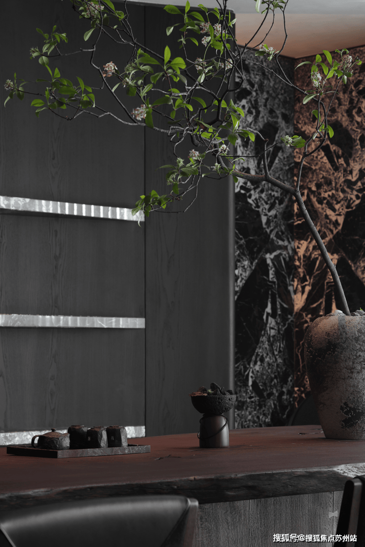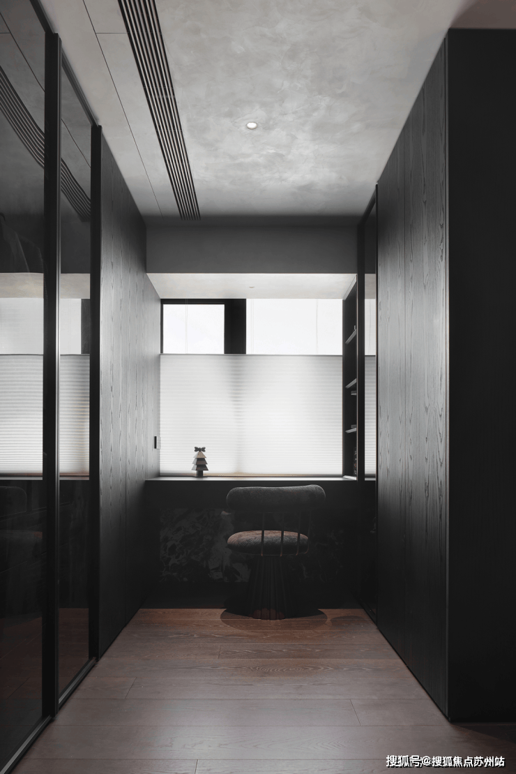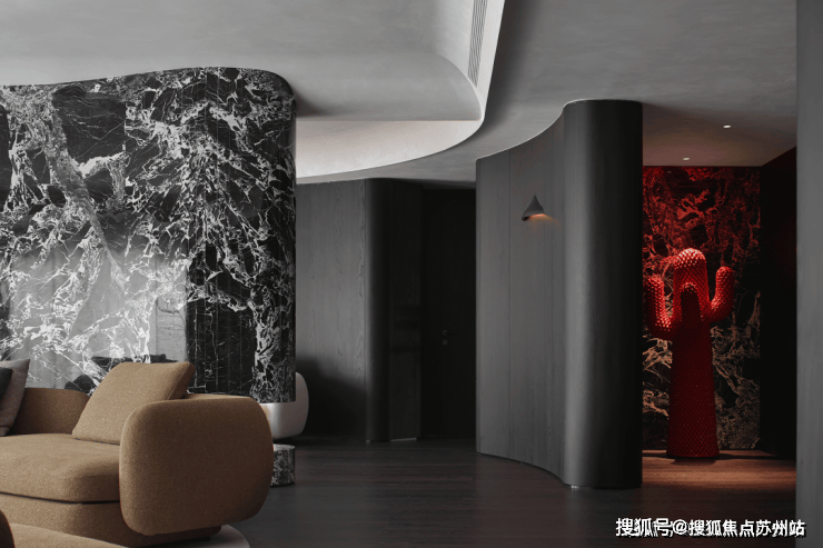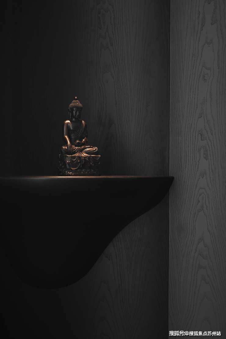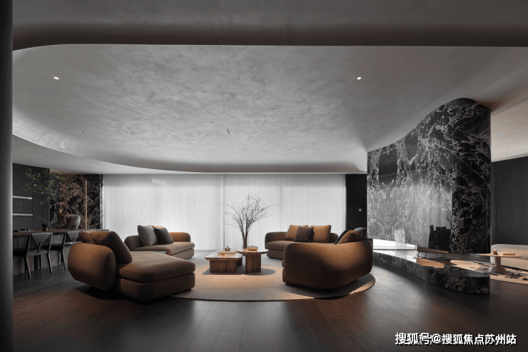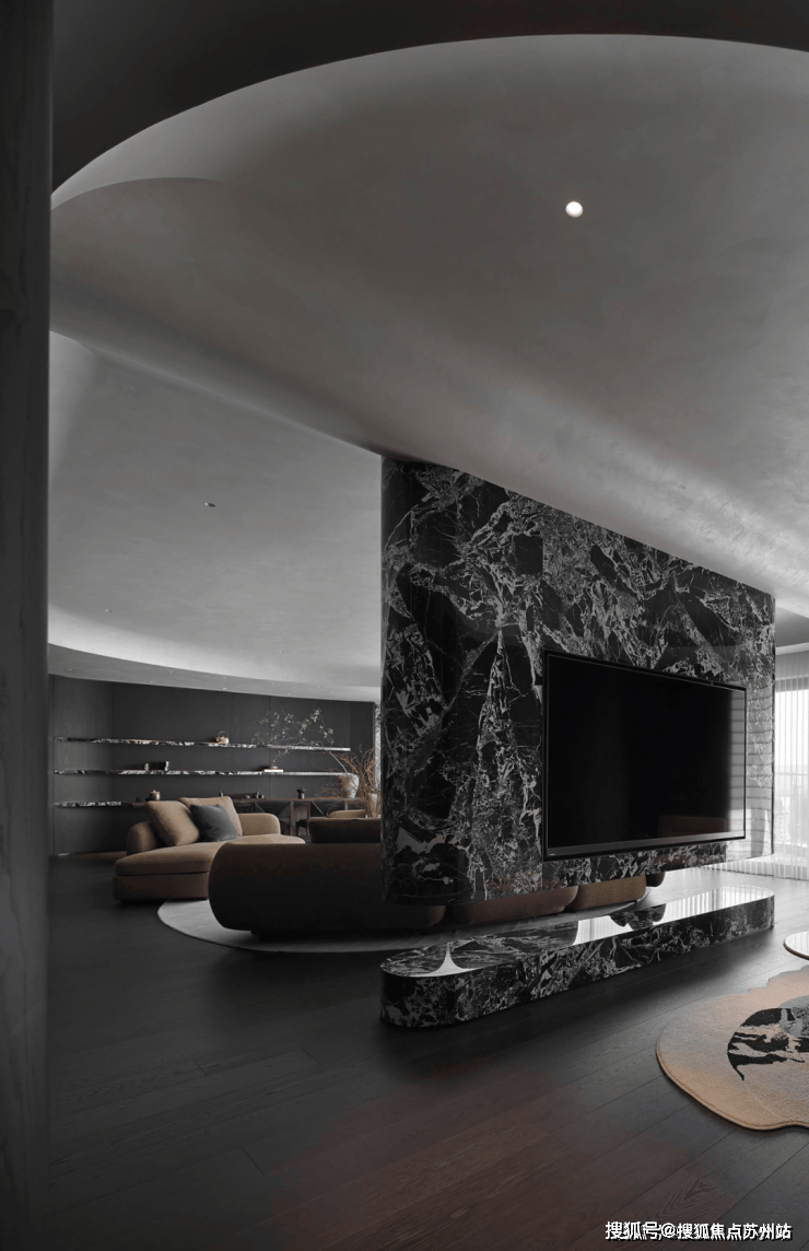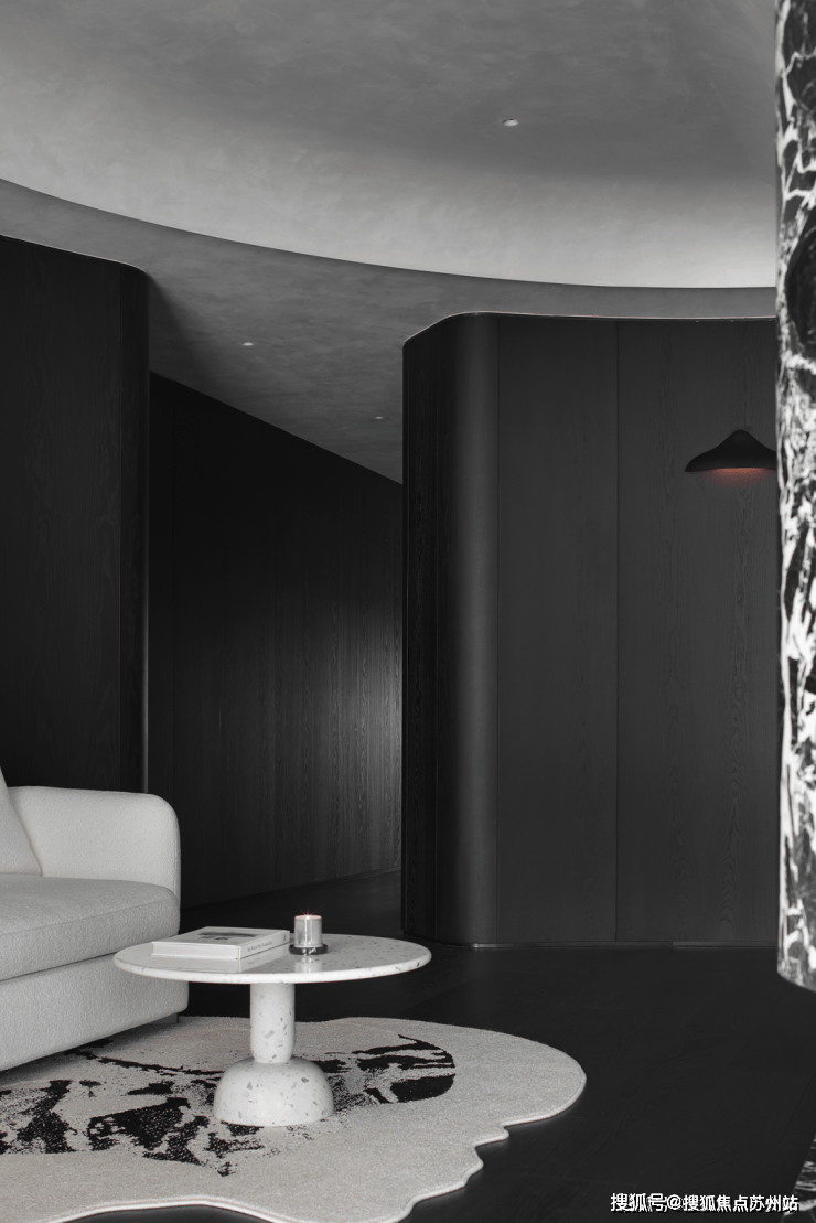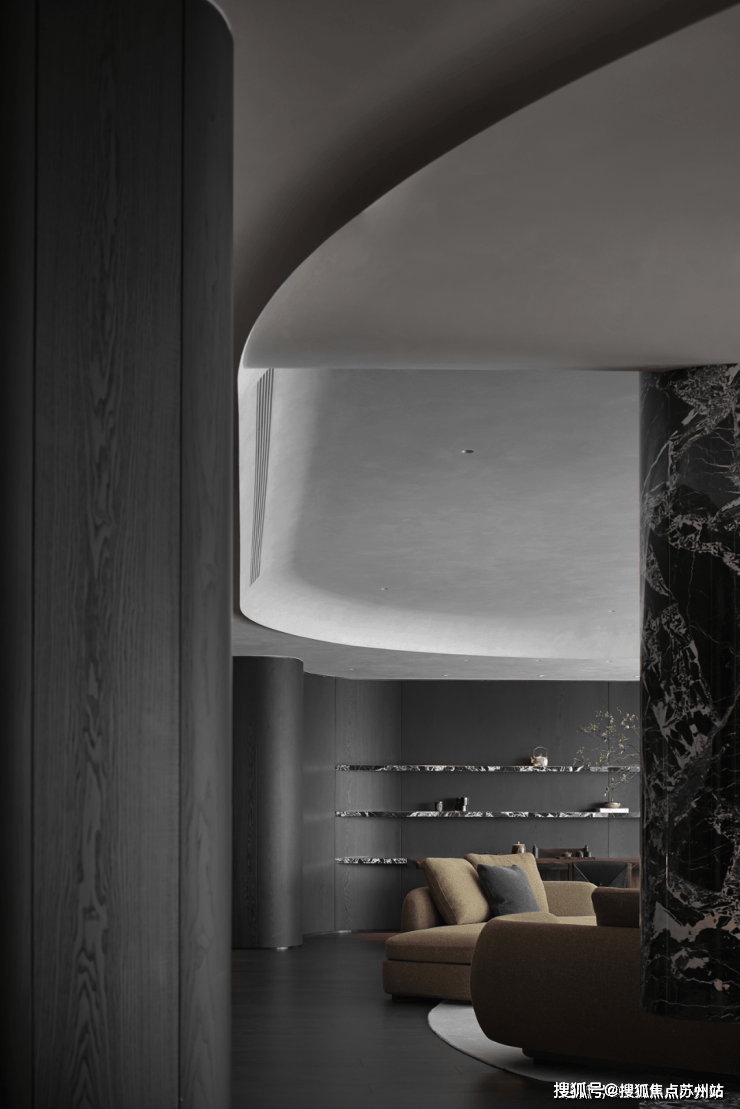 业主的想法与执著设计的理念不谋而合,满足功能性需求后,以“隐于形的诗意”为核心,通过精心策划,打破了线性空间的固有逻辑,于蜿蜒的曲线形态与深色空间画布中,缔造出明朗大气、优雅静谧的氛围感。