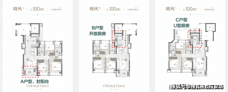 户型设计上,建面约100㎡户型,功能性做到3房2卫,适配市场主流需求。