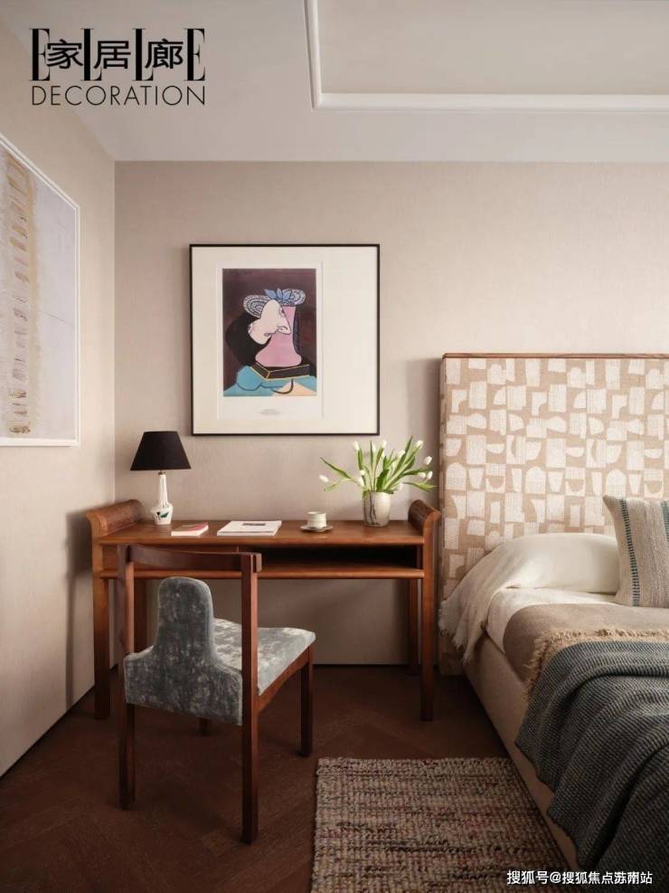 因此,设计摒弃花哨的视觉语言,回归到“感受”本身。“作为最接贴近自己的空间,卧室里你最在意的是什么?”,这个答案落在了“环保”与“亲肤”上。设计师选择羊毛、棉麻等作为卧室空间的体感材料。而不管是从欧洲特别定制的毛毯到床头软包面料都经历了一系列苛刻的筛选,以达到人们心目中理想的使用体验。