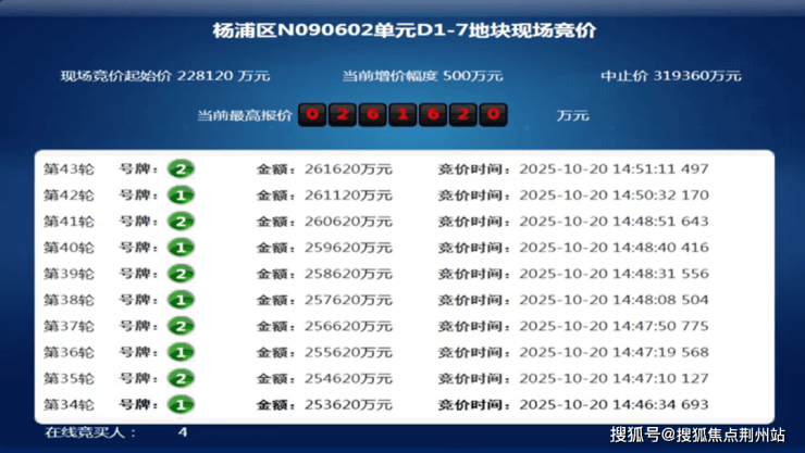 在去年10月举行的上海第八批次土拍中,杨浦定海社区D1-7地块,4家参与竞争,经过43轮竞价,溢价率达到了14.69%;