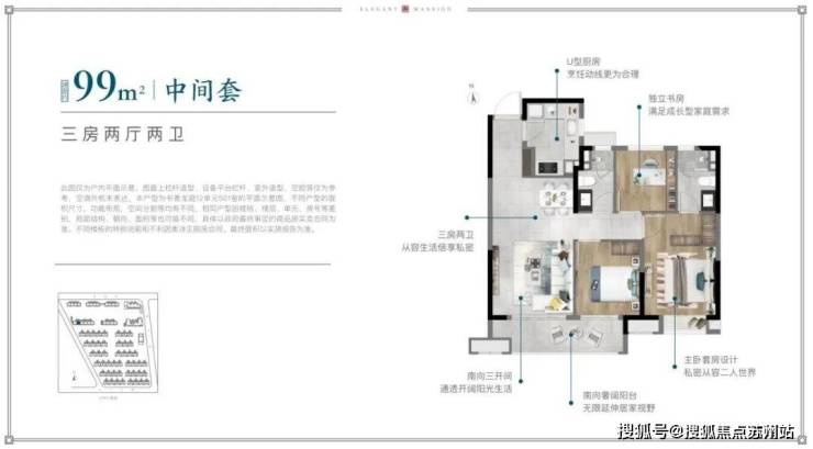 三开间朝南,中建玖里书香售楼处电话:400-8862-334【售楼热线】阳台面宽可达约5.3米,横跨客厅和南向次卧,大幅度增加南向采光面。来客、家务、居住动线合理布局,互不干扰。双明卫设计,保证生活品质与独立私密。主卧套房,配置独卫、衣帽间,打造面面俱到的寝居空间。