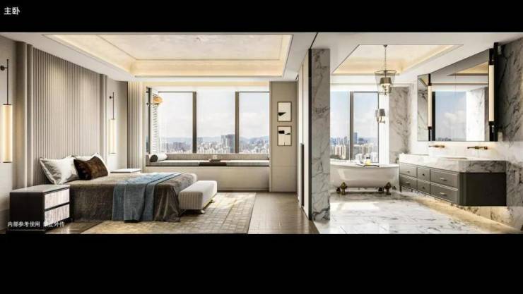进门后即见独立艺术玄关,回家仪式感拉满;玄关南向专门设计有一处行李间,可以满足鞋柜、包柜、行李箱、自行车这种大型物件的专业收纳处理;此外,入户后去主卧,以及去客厅的动线,两条动线互不交叉;南向主卧套房还设计了双衣帽间,男女分区,女主衣帽间有中岛的收纳,充分满足“大男主”“大女主”的精致生活。
