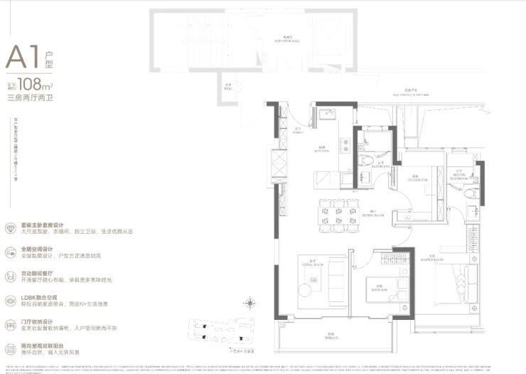 108㎡的入门级三房,起步门槛相比润府提高不少。