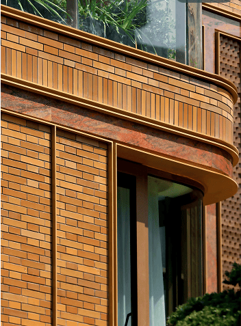 例如,在社区入户,目前已经完美呈现出来的,有强烈视觉冲击的立面大量的红砖、红洞石及大面积的落地弧形玻璃搭配的相得益彰,整个门头既有厚重的历史感,又不失极简主义的现代美.