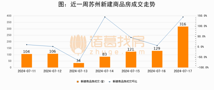 【苏州成交日报】07月17日新房成交316套、二手房284套;涨价房源102套