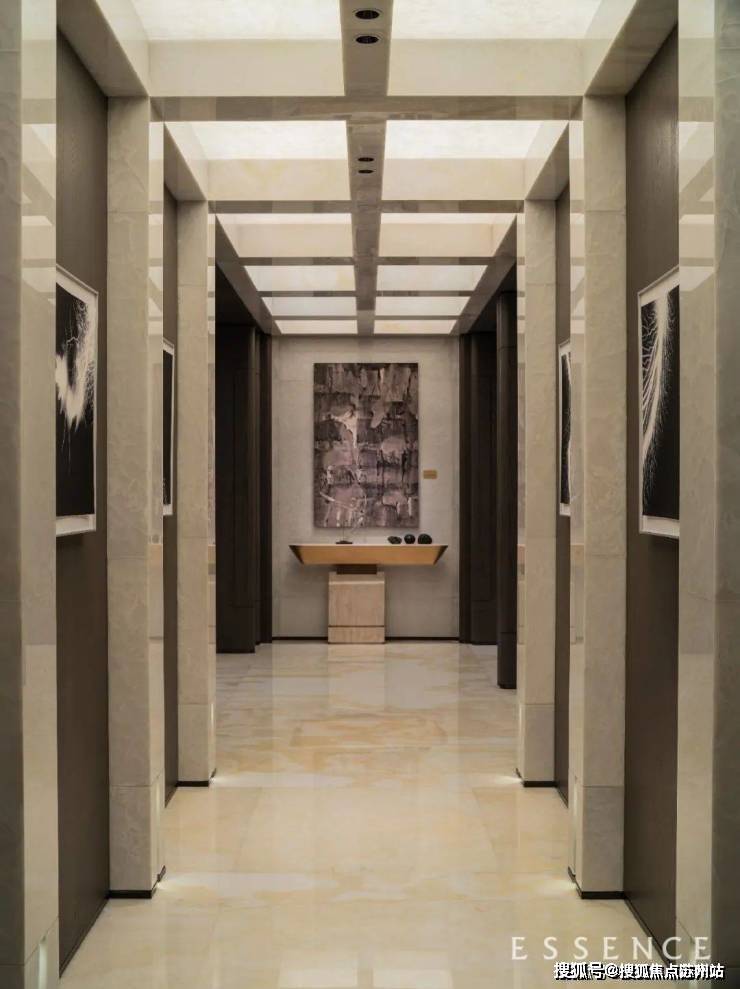 在产品设计中,兆丰ESSENCE讲求人文与艺术的空间理念。建面约730㎡天际平层「归屿」回归居住的原点,开启精神的居所。约4.2米的空中艺廊,从地板到天花,皆为白色玉石通铺,并以天然肌理拼出婉转纹路,色泽在光影流动间变幻。墙壁与地板采用木饰面,每一处精心放置的艺术品,都在为空间注入灵动的气韵与深远的意境。