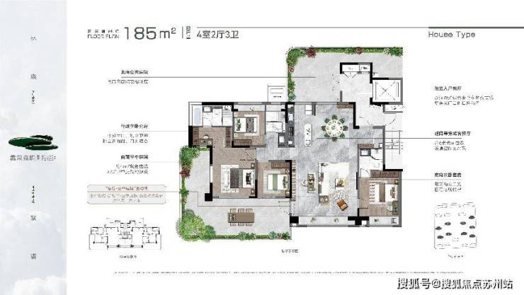蠡棠森屿的户型设计堪称“空间革命”样板。在建面约185㎡B户型中,双入户洄游动线打破传统归家逻辑,私密与共享在步履间自由切换;约10㎡独立光厅以仪式感过滤尘嚣。