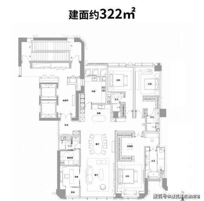 以建面约322户型为例: