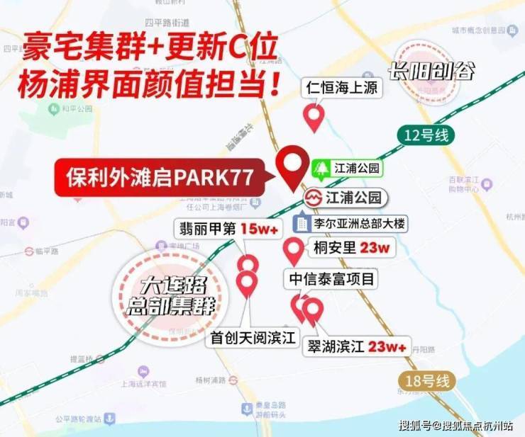 【保利外滩启Park77官方售楼处咨询热线】400-812-3664(24小时服务,人工客服8:00-22:00) 作为城市更新重点区域,新地标不断落地,左手翡丽甲第、仁恒海上源等豪宅扎堆,右手是中信泰富、翠湖滨江、桐安里等新贵盘接力,一条长阳路串联起杨浦“豪宅天际线”。