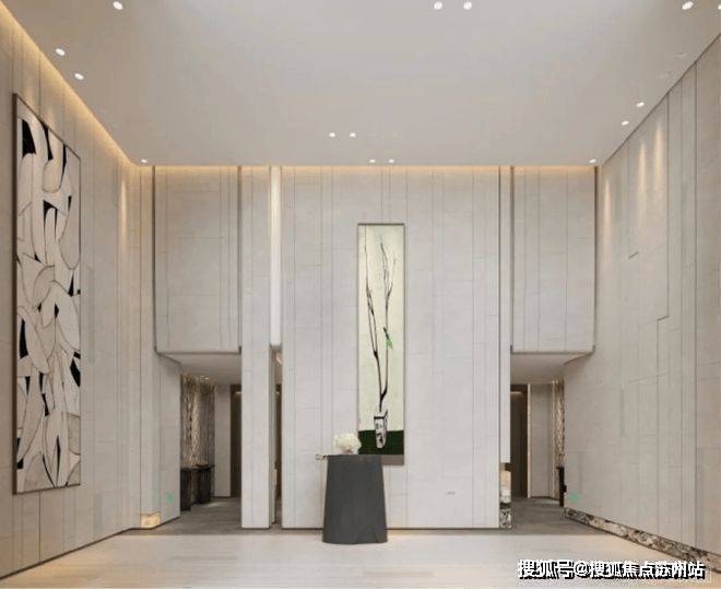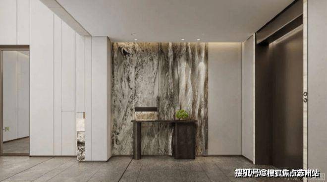 电梯厅采用了更为紧凑而精准的 细节比例控制,确保空间的通透与流畅,不仅提升了空间的整体感, 还营造出极具艺术造诣的雅致候梯空间。