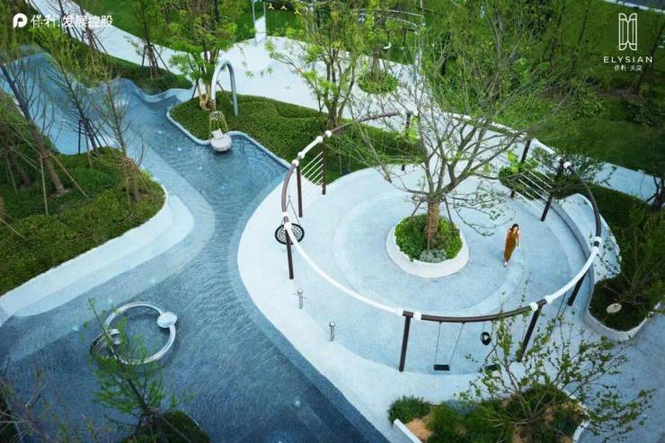 红线内外一体化,是保利天奕非常大的亮点。外部已经部分呈现的休闲绿地,和内部园林互相渗透,让松弛感从还没抵达社区大门就开始了。