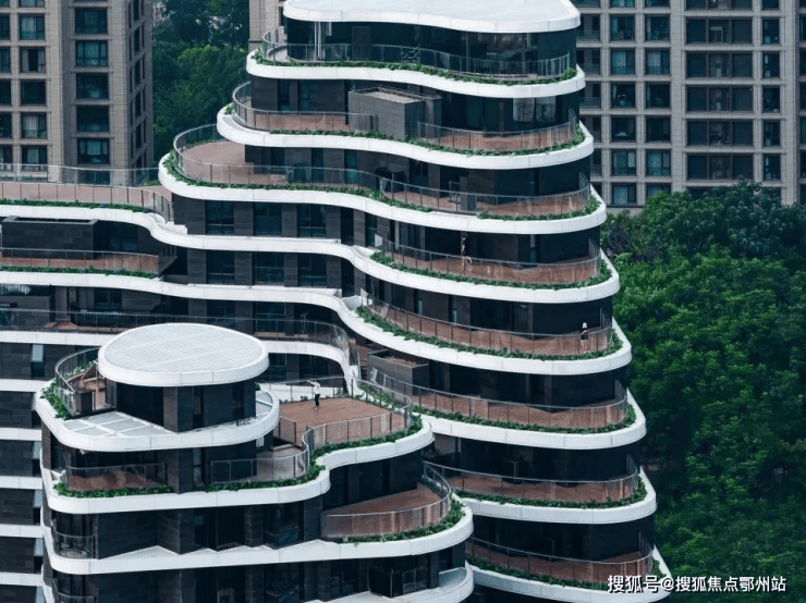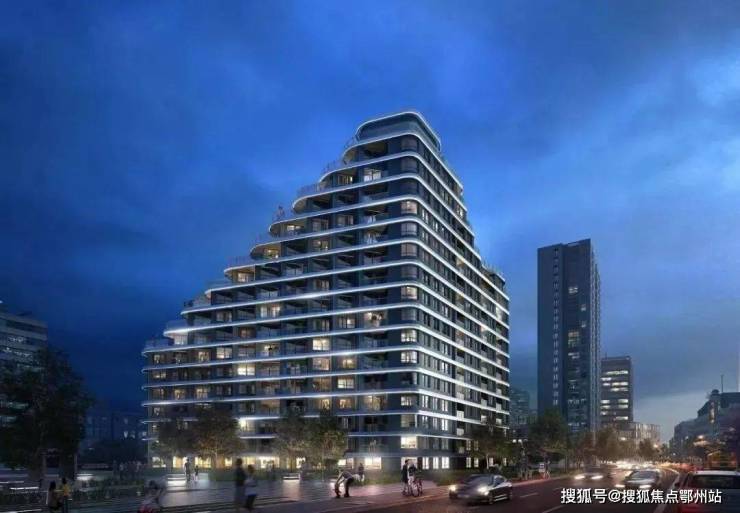 外立面采用玻璃幕墙现代简约风.建筑轮廓曲线蜿蜒,呈波浪线型层层迭高并后退,时尚感非常强.