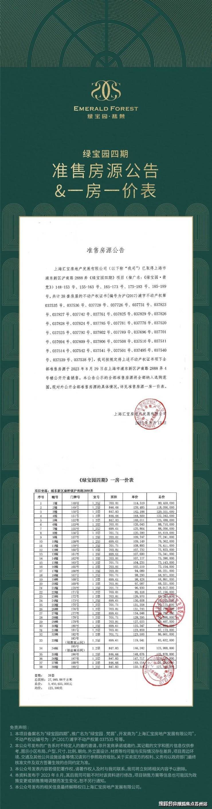 【绿宝园翡梵】:建面约684/748/859平别墅,共38套,少量房源在售,可直接下定,总价约7000万起!