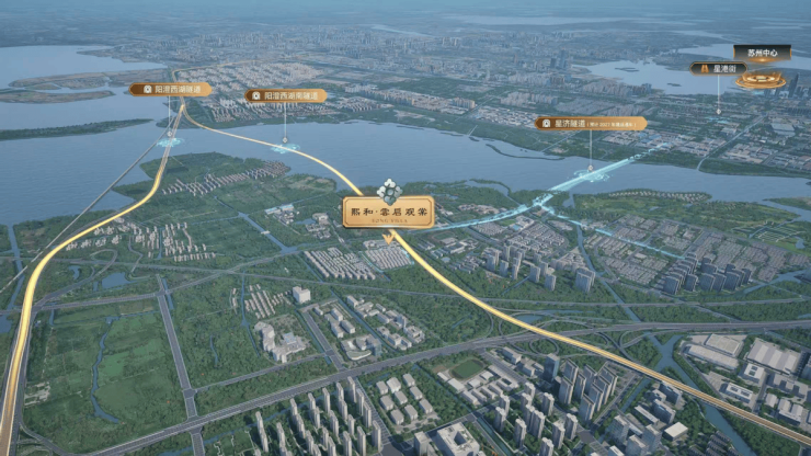 城市的繁华与自然的静谧,往往难以两全。熙和·雲启观棠踞守一步金鸡湖的优越位置,以星济隧道(在建)与阳澄西湖南隧道,双隧道贯通,将园区核心的璀璨灯火与湖岸的宁静风光从容衔接。这一恰到好处的距离,让居者既能快速抵达苏州中心、湖东CBD,又能退守一方静谧天地,于喧嚣之外安放身心。