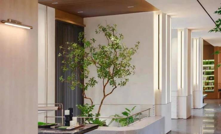 第三进:江南女子意境的雕塑和绿植,融入树植水景的搭配,让居者快速切换到放松的归家氛围中。