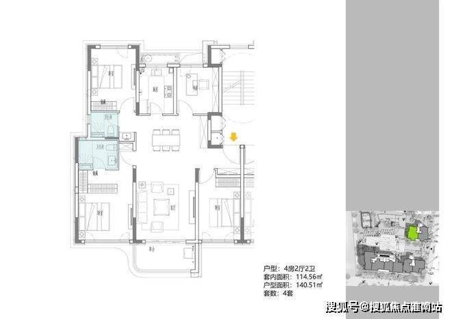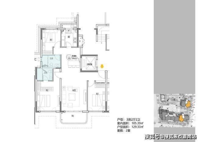 2地块容积率2.94,只有一栋小高层,共67套房源,产品建面约108-148㎡.
