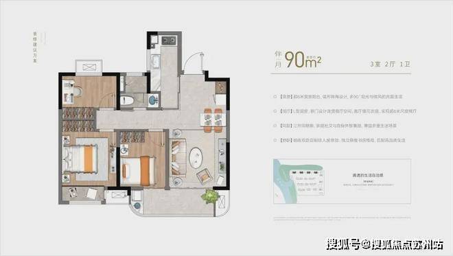 2、(方正)户型方正,高得房率,超12米三开间朝南,动静分区,流畅居家动线;