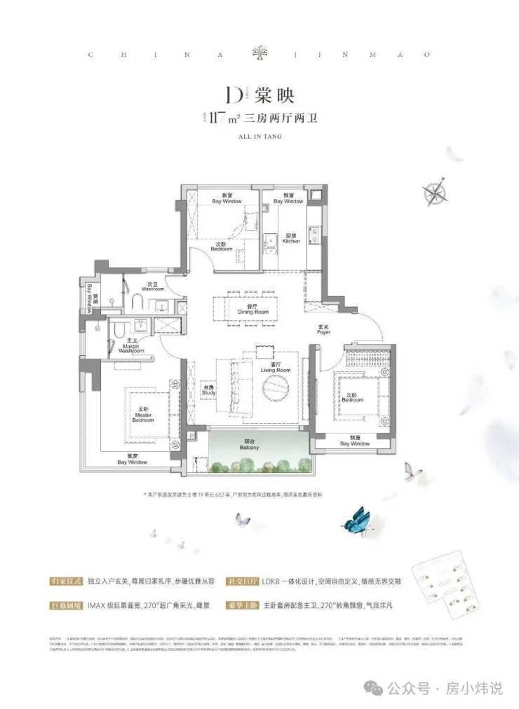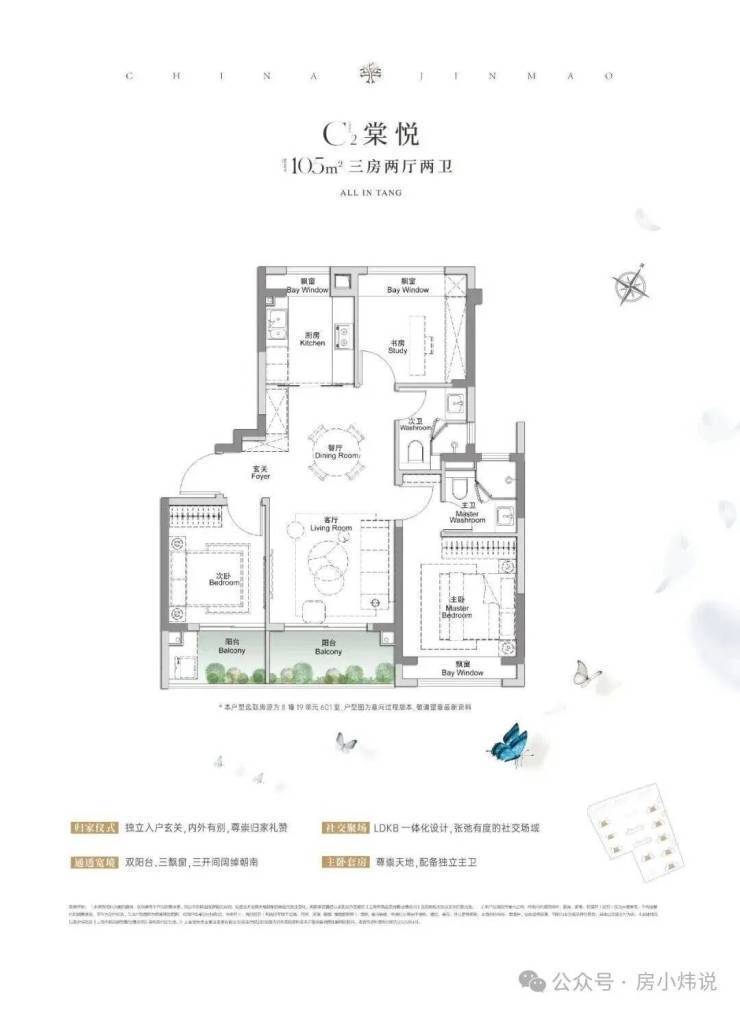 全景舱艺境美宅,标准层约3.1米层高、270度全景飘窗、LDKB一体化、南向跑道阳台、超12米南向全屏开间,无限视野尽收眼底,还有超金喜的满配精装,全上海只有央企金茂才能做得到。