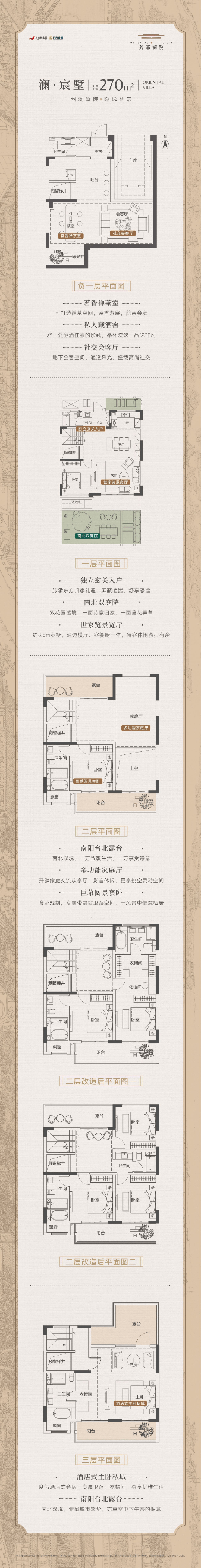 目前主推的是建筑面积约270㎡和300㎡的联排别墅。我们以270㎡户型为例,给大家感受一下。 (270平户型图示意) 格局非常大气,功能分区明确,保证了每个家庭成员都有独立舒适的空间。大面宽、多阳台的设计,让阳光和清风充满室内,居住感满分。