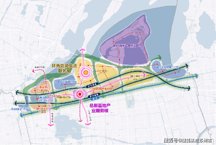 从湖西CBD到湖东CWD再到阳澄南岸创新城,是园区从制造业向以创新智造产业为主导的经济形态的转变。“副中心”阳澄南岸创新城,定位“长三角总部经济协作联动区”和“园区产城更新升级样板区”,重点引入高新科技智慧企业总部,凝聚全球科创产业资本,未来将全面激活城市价值和土地价值。“苏州智造”的战略定位下,阳澄南岸创新城代表着园区、甚至整个苏州未来的价值核心和无限想象力。(内容来源于苏州工业园区规划建设《 “何以园区”系列专栏|“一主两副”新格局:阳澄南岸创新城,园区高质量发展新的增长极》 )