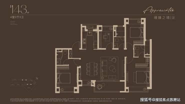 建面约143㎡四房设计,不论是三代同堂还是二娃家庭,都舒居无忧!2梯2户的设计,极具私密性的入户门厅,彰显大宅归家礼序。独立玄关,既是归家仪式感,更添收纳空间;约14米朝南面宽,搭配约7米尺度横厅,尽显大宅风范;东西双套房设计,奢享全龄世家的静谧时光。