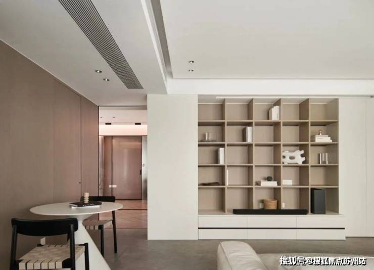 ▲ 客厅取消传统茶几的布局,腾出更多活动空间,选择模块沙发更加自由随性,也可以后期自己调整布局