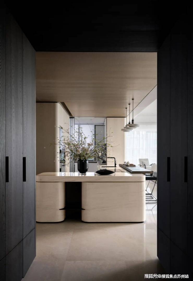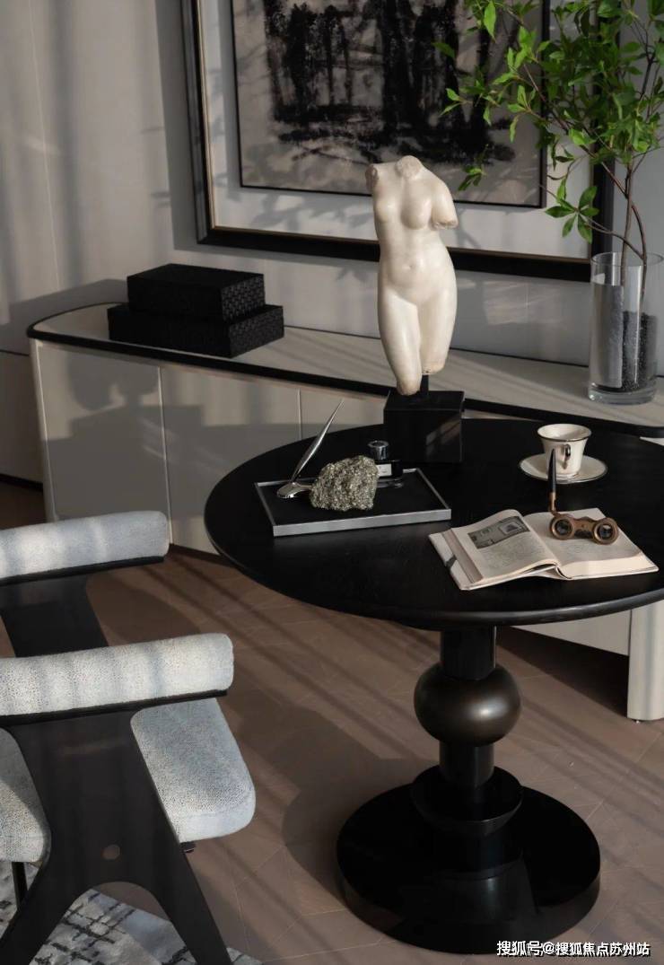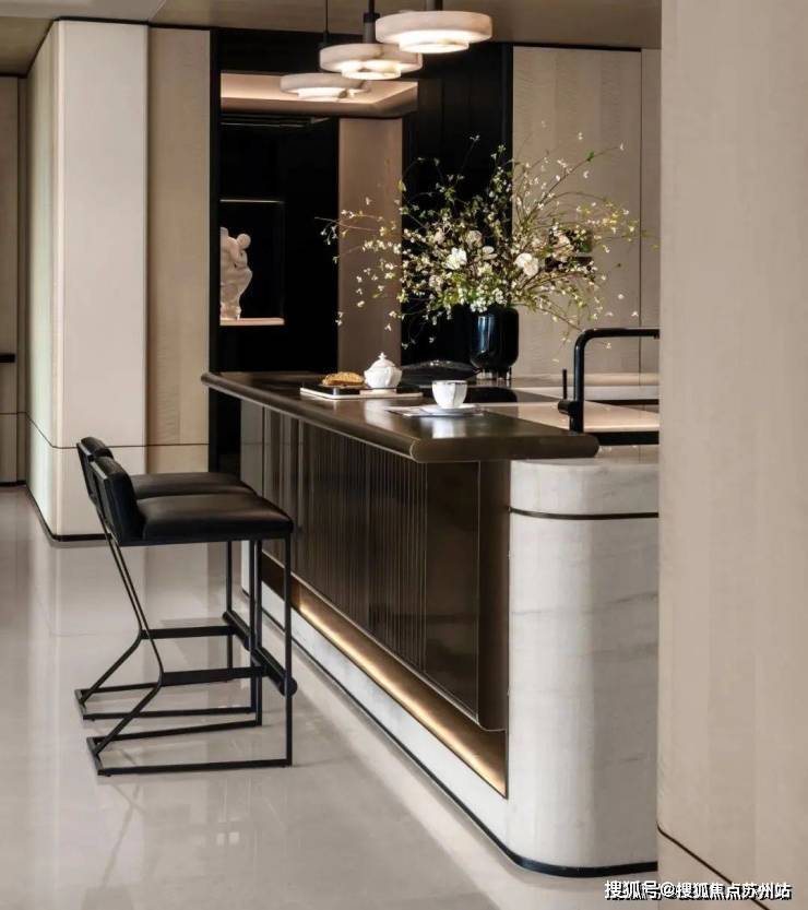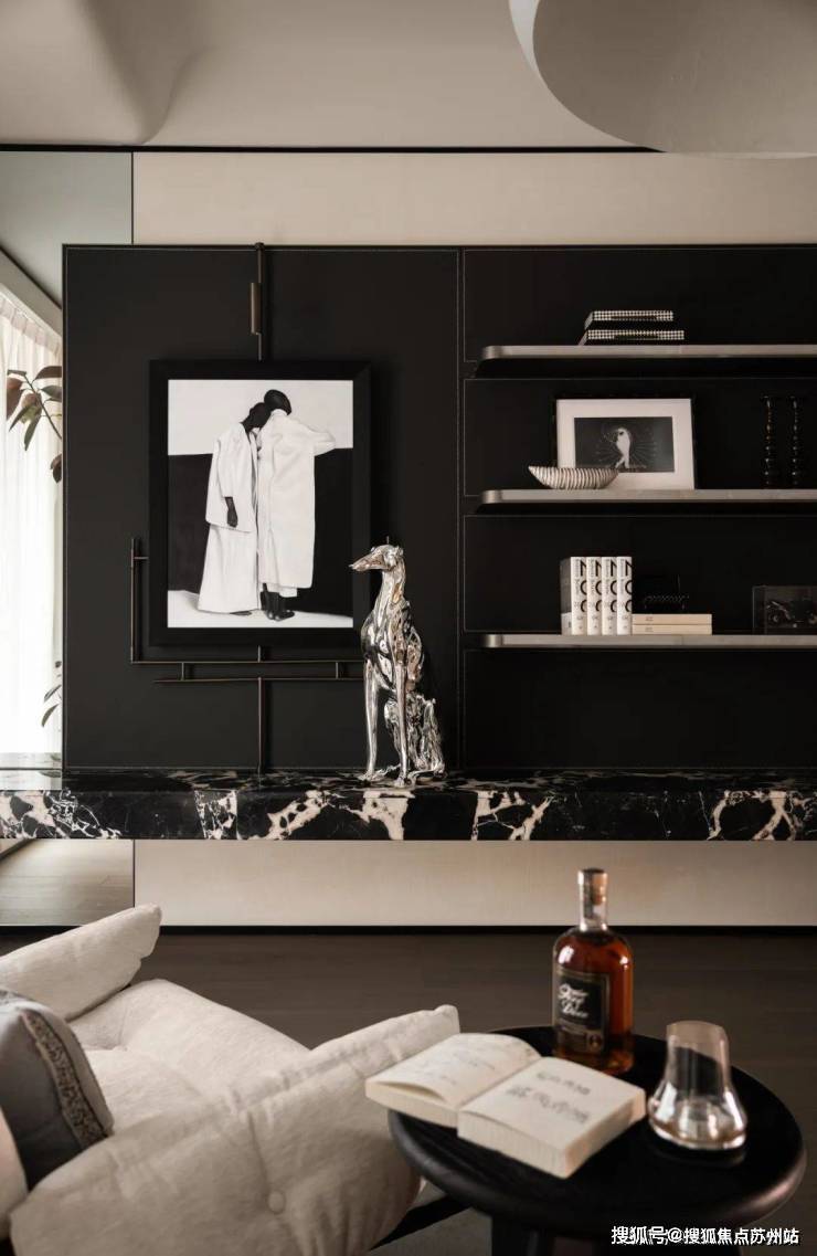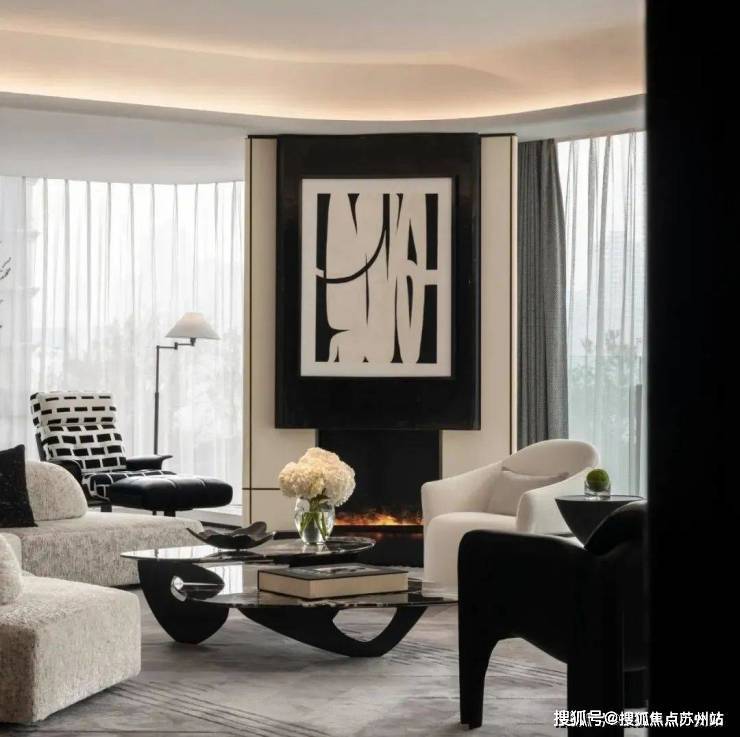 室内设计融合了香奈儿风格的温柔都市时尚感。整体色调以黑白灰为主,既有现代风尚的冷静与理性,又有都市生活的时尚与雅致。