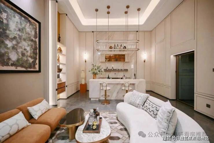 比如吊顶弧度的设计、客厅皮革与大理石的运用,都在诠释品质生活的意境。